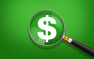 Searching Magnifier Glass Dollar, Dollar Icon Under Magnifying Glas